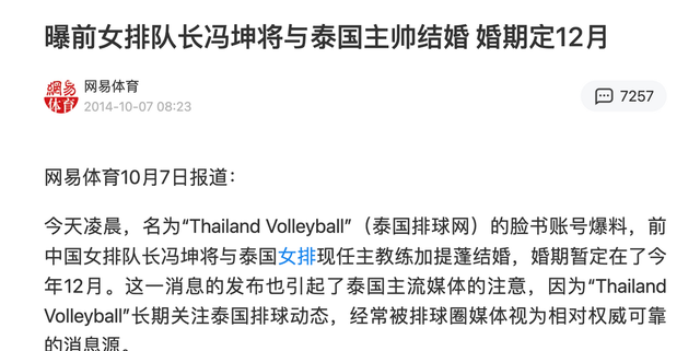 他们婚后在泰国生活,冯坤偶尔回国做排球青训,她曾说:“我不喜欢被过度关注,我喜欢普通人一样的生活。”确实,这些年她几乎不抛头露面,连微博都不怎么更。